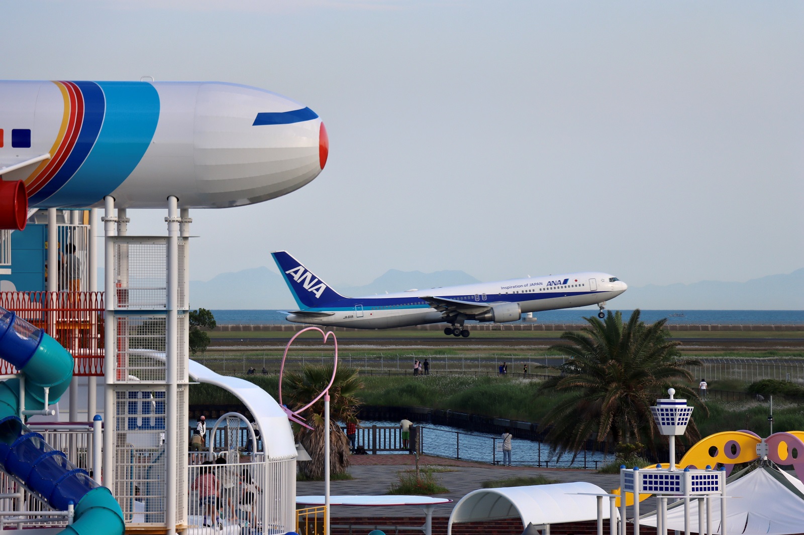 日没と共ににANAのB6がアプローチしてきました。この日は波も穏やかでとても綺麗でした。